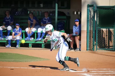 North Texas broke through first, using three infield singles to push two runs across, taking a 2-0 lead in the opening frame. Senior Kelli Schkade and sophomore Bailey Thompson led off with back-to-back singles, and later scored on sophomore Rhylie Makawe's RBI single to third.