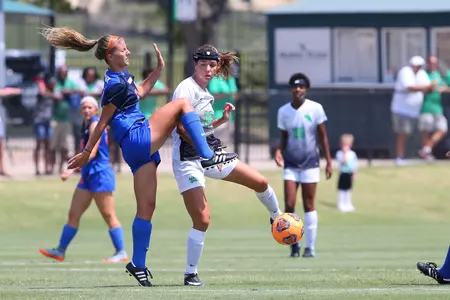 But the script changed in second half. North Texas put up 12 shots, most on goal, and finally found the back of the net during a scrum in the box in the 80th minute. The goal came off the foot of freshman Elle Marie DeFrain. It's her first goal of her career.